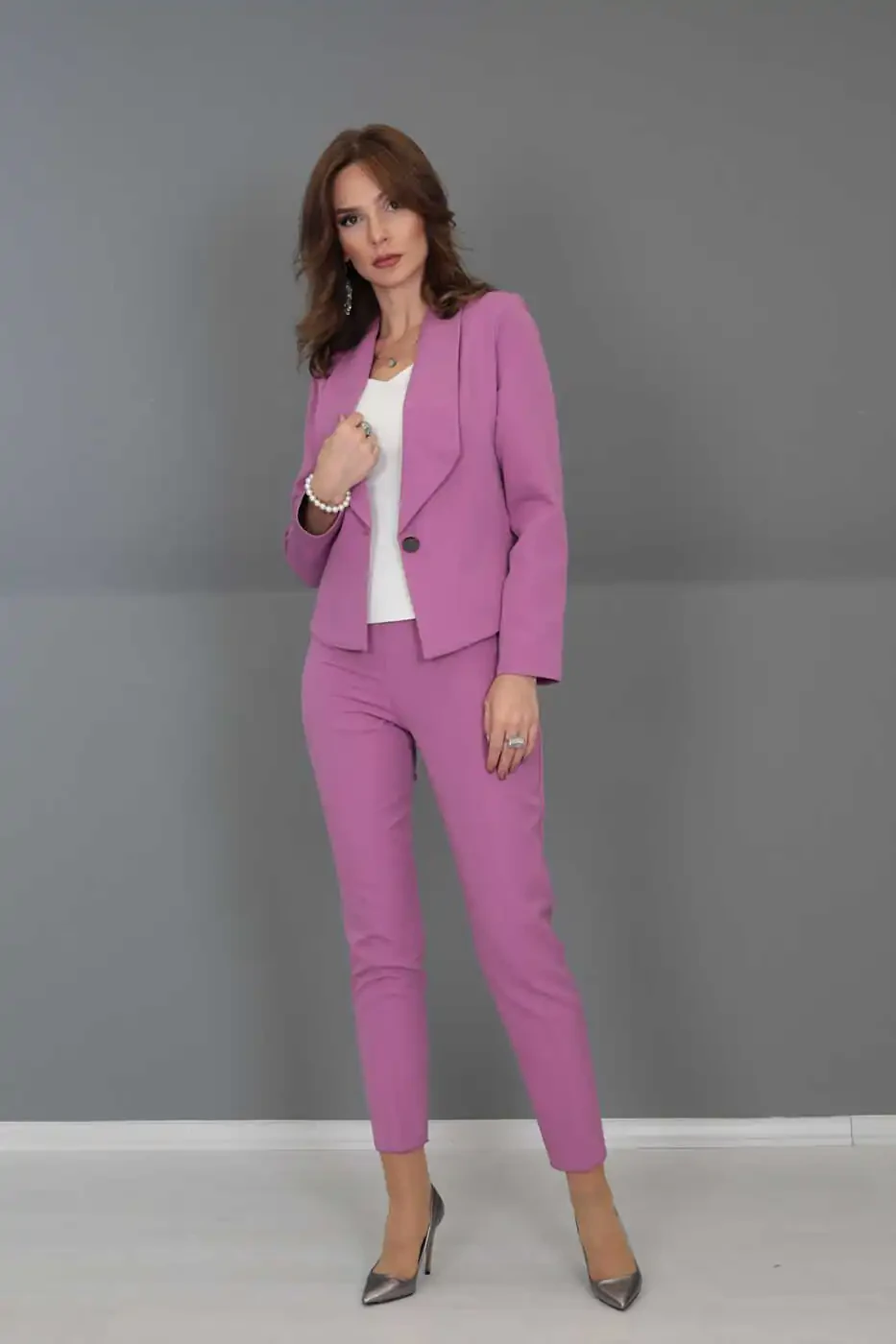 Plus Size Mini Jacket & Wide Leg Pants Set - Lilac | Elegance and Comfort Combined