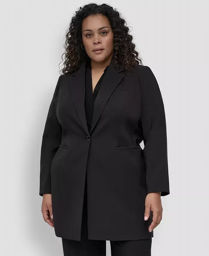 DKNY Plus Size Blazer: Stylish and Comfortable Office Style | Single Button, Long Cut, Quality Fabric