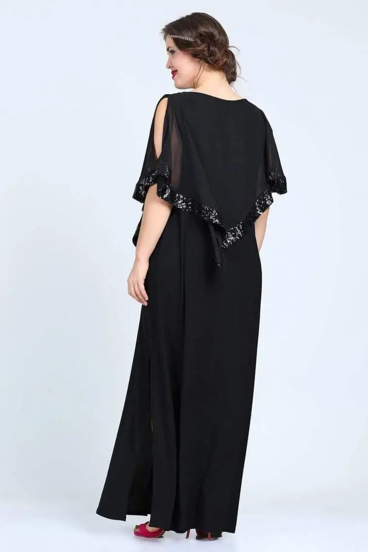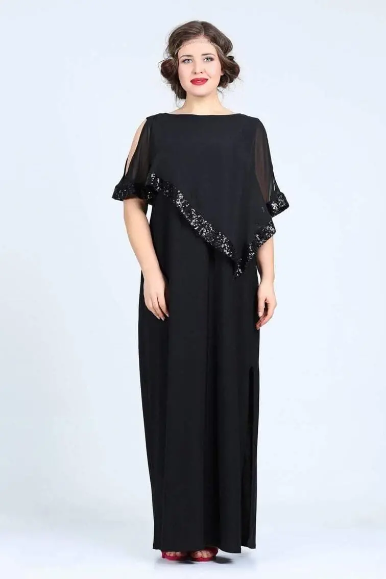 Make a statement with your elegance on your special occasions with the Plus Size Sequined Long Evening Dress KL8022U Black! This eye-catching evening dress, with its elegant details and comfortable cut, allows you to look stylish while helping you feel comfortable all day long. The long and loose cut of the evening dress perfectly complements your body lines and gives you a confident stance. Sequin details add movement and sparkle to the dress, while combined with the noble color of black, it offers a sophisticated look. Thanks to its flexible sandy fabric, it gently fits your body and does not restrict your freedom of movement. Whether at a wedding, a party, or a special celebration, you can attract all the attention with this evening dress. Offering both elegance and comfort, this evening dress is a candidate to be an indispensable part of your wardrobe. This dress, designed taking into account the body measurements of plus size women, is ideal for women in the 44-46 size range. Please review the mannequin measurements for more detailed information about the dress's fit and cut on the mannequin. The fabric content of the dress consists of a mixture of 90% polyester and 10% lycra. In this way, it is both durable and flexible. The soft texture of the fabric leaves a pleasant feeling on your skin and allows you to feel comfortable all day long. Please follow the washing instructions for the longevity of the dress. The washing instructions on the product label contain the necessary information for proper cleaning and care of the dress. You will dazzle in every environment and collect unforgettable memories with this stylish and elegant evening dress.