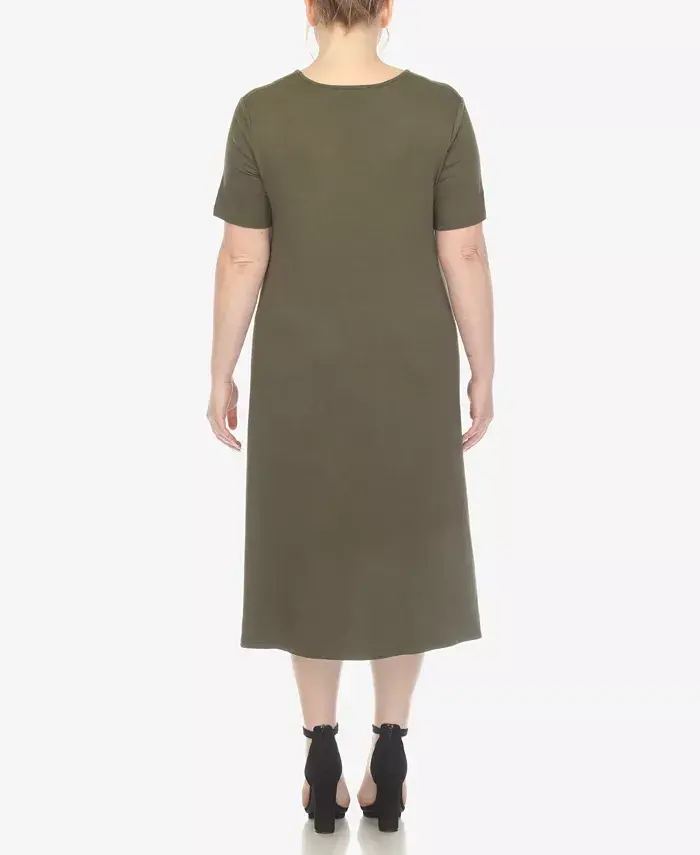 Invest in a wardrobe staple that will never go out of style. It's basic yet elegant flowy design allows you to accessorize to your heart's content or simply slip it on for a grab-and-go outfit solution. Designed with practicality in mind, this dress features two functional side slip pockets and made from premium quality fabric that feels soft against your skin. Embrace simplicity and elegance with White Mark's midi dress. Approximate model height is 5'8" and she is wearing a size 2X Approximately 44" long Runs true to size, order your normal size Relaxed fit midi dress Unlined This item purchased online must be returned to the vendor by mail only. This item cannot be returned to Modazone stores. Rayon, Spandex Machine Washable Imported