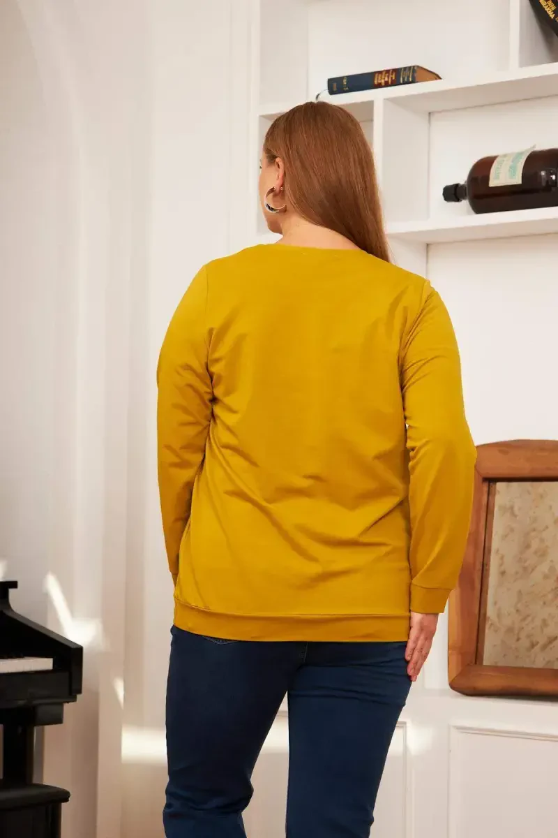 The Plus Size Stone Print Sweatshirt Olive offers a perfect option for those looking for comfort and style. This sweatshirt stands out not only for its comfort but also for its stylish design. It will help you achieve that ideal balance you are looking for especially in plus size clothing. Ideal for daily use, this sweatshirt keeps you comfortable all day long thanks to its quality cotton fabric. The breathable structure of the fabric helps prevent sweating and keeps your skin dry. The olive color offers a natural and elegant look, while the stone print details add movement and originality to the sweatshirt. Stone prints are carefully selected and placed, and are specially designed for long-lasting use. This way, you can use your sweatshirt for many years as if it were the first day. The plus size cut provides a comfortable fit without constricting your body. This allows you to move freely and feel good during the day. The wide sleeves and comfortable collar of the sweatshirt further enhance your comfort. You can easily wear this sweatshirt whether you are relaxing at home, meeting with friends, or exercising. Combination ease is also a plus! You can easily combine it with jeans, tracksuits, leggings or skirts and create different styles. You can complete it with sneakers for a sporty look, or with boots or heels for a more stylish style. You can also personalize your style with accessory selection. For example, you can make your sweatshirt more eye-catching with a stylish necklace or a colorful scarf. The Plus Size Stone Print Sweatshirt Olive is not just a piece of clothing, but also a style statement. What are you waiting for to add this sweatshirt to your wardrobe that will increase your self-confidence and make you feel stylish and comfortable in any environment? Remember, style is not just about body size, it's about how you feel. You will always feel good with this sweatshirt.