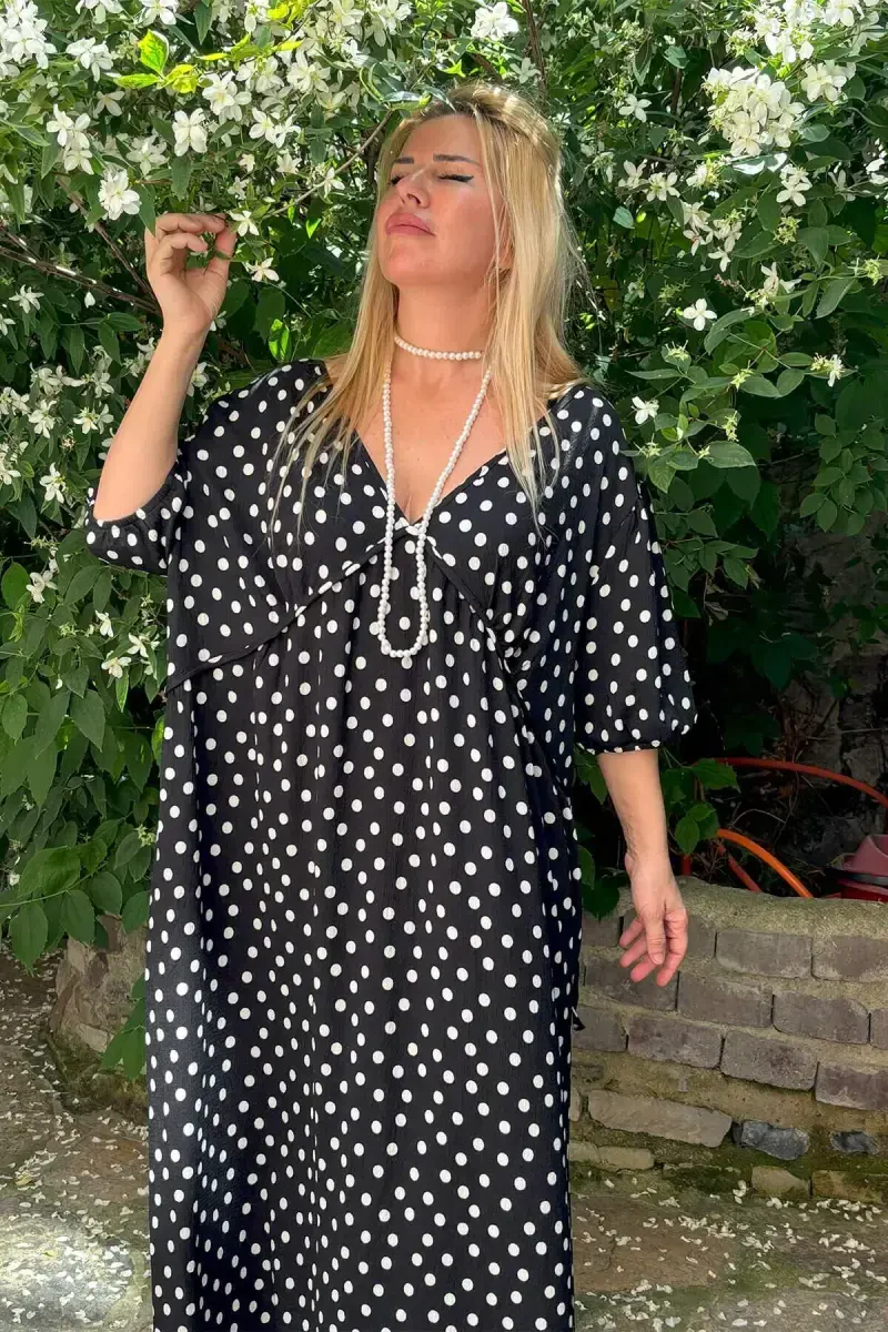 plus size women dress, maxi dress, polka dot dress, belted dress, stylish dress, comfortable dress