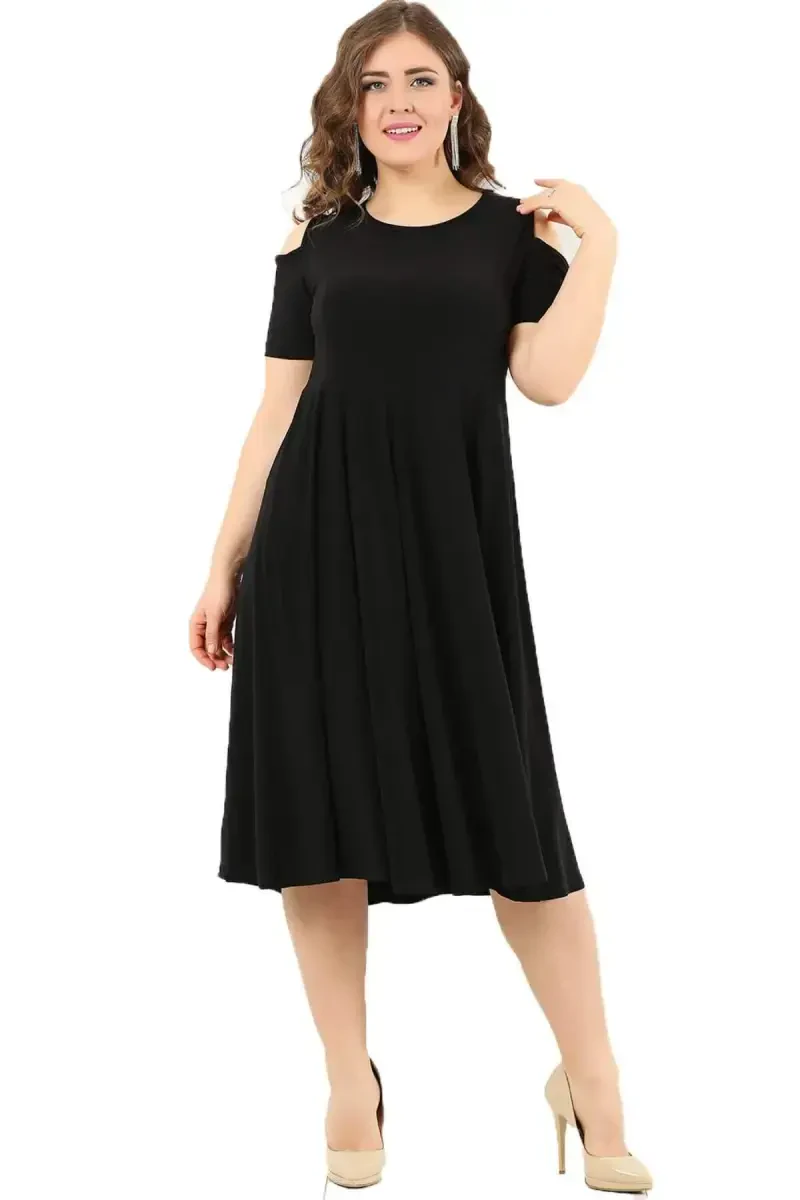 Siz har qanday hajmda go'zalsiz! Yelkalari ochiq katta Sandy mato li katta hajmli ayollar uchun mini ko'ylagimizda o'ziga ishonch bilan porlang.