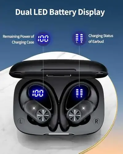 PocBuds Bluetooth Headphones are equipped with a powerful battery that offers up to 80 hours of playtime. With the wireless charging case, your music enjoyment never ends. The digital display clearly shows the battery level and other information. Designed with ear hooks to stay secure in your ears even during sports, PocBuds deliver an exceptional musical experience with deep bass and IPX7 waterproof technology.