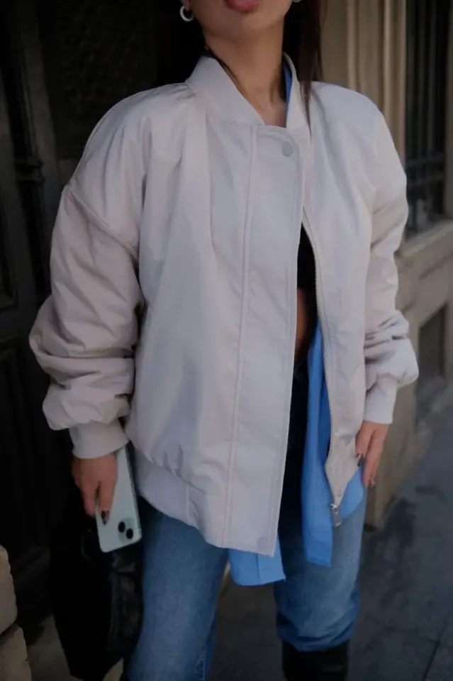 Pocketed Bomber Jacket - White, a candidate to be the indispensable of your wardrobe! This stylish and useful jacket will accompany you both in your daily life and in your special moments with its modern design and comfortable fit. Reflecting the timeless elegance of bomber jacket fashion, this model will easily adapt to any combination with its white color and take your style to the next level. Whether you want to achieve a sporty look with jeans, or create a more elegant style by combining it with a stylish dress, the Pocketed Bomber Jacket - White will always be the right choice.One of the most striking features of the jacket is its useful pockets. Thanks to the pockets where you can safely carry your phone, keys, wallet, etc. that you need during the day, you will both maintain your comfort and not compromise your elegance. The bomber jacket cut fits perfectly on you without restricting your freedom of movement and offers a comfortable use all day long. Thanks to its weather-resistant fabric, this jacket, which you can easily prefer in seasonal transitions, is designed for long-lasting use.Pocketed Bomber Jacket - White stands out not only with its appearance but also with its quality. The jacket, produced from carefully selected materials, will not let you down with its long-lasting durability. The meticulousness in the stitching details reveals the quality of the jacket, while the vividness of the white color is preserved for a long time. This jacket, where attention is felt in every detail, is ready to be the choice of stylish women.This jacket is not just a piece of clothing, but also a form of expression. It is a piece that allows you to express yourself freely, reflects your style and makes you stand out in any environment. Make your style speak with the Pocketed Bomber Jacket - White and maintain your elegance in every moment. This jacket, which you can easily combine with other pieces in your wardrobe, offers you endless combination possibilities. This versatile jacket, which you can use in both sporty and stylish combinations, will be one of the most important details that will complete your style.Pocketed Bomber Jacket - White has a design that meets the needs of the modern woman. It is an ideal choice for women who want to look stylish and feel comfortable. This jacket, which will accompany you every moment of the day, is a candidate to be one of the most favorite pieces of your wardrobe. Discover Pocketed Bomber Jacket - White now to reflect your style and highlight your elegance!