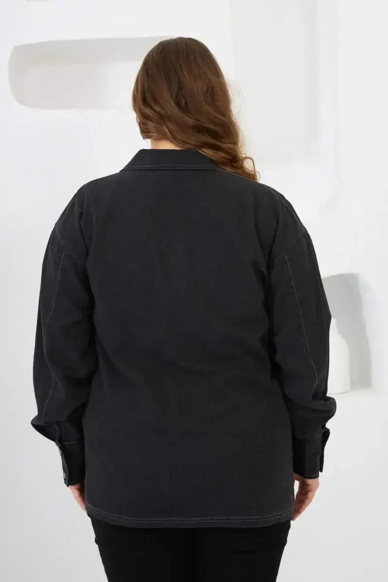 The Pocket Stone Detail Plus Size Shirt in Smoke Grey is a piece that combines elegance and comfort, standing out with its unique design. This shirt is specially designed for women who don't want to compromise on comfort in plus size clothing. The smoke grey color is a candidate to be an indispensable part of your wardrobe, harmonizing with all kinds of combinations. The pocket details on the front of the shirt are embellished with stones, adding elegance to its elegance. These details add movement and vitality to the shirt, while also allowing you to reflect your style. The cut of the shirt gently covers the body lines, offering a flawless look. Thanks to its draped structure, it allows you to move comfortably throughout the day. Whether you prefer it for daily use or for a special occasion, this shirt will help you express your elegance in any environment. The nobility of the smoke grey color, combined with the sparkle of the stone details, allows you to create an eye-catching combination. You can reflect your own style by combining the shirt with pants, skirts or tights in different colors. You can also complete the elegance of the shirt with the choice of accessories. For example, you can further enrich your combination with an elegant necklace or a stylish belt. The Pocket Stone Detail Plus Size Shirt in Smoke Grey is an investment that will maintain its place in your wardrobe for many years with its quality fabric and careful workmanship. Thanks to the breathable structure of the cotton fabric, it eliminates the problem of sweating and provides a fresh feeling throughout the day. The shirt is also very easy to care for. It offers practical use thanks to its machine washable feature. In short, the Pocket Stone Detail Plus Size Shirt in Smoke Grey is an ideal choice for women who want to be both stylish and comfortable. Reflect your style with this shirt and feel special in every environment.