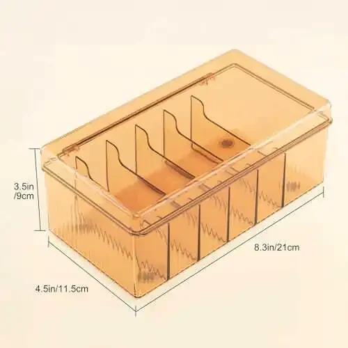 What You Will Get: You will get 1 pack amber color acrylic lash extension supplies organizer. Material and Size: Made of high-quality acrylic material and it has a compact size. The size is only 8.3in*4.5in*3.5in, it can be easily to put in a lash cart or store in somewhere. Large Capacity: The eyelash supplies storage container is compact but it has a large capacity. The lashes organizer has 6 compartments, we can put most of the lashes supplies in the makeup organizer, e.g lash glue, eyelash tape, glue ring, micro swabs, eyelash gel pads and mascara brushes. Perfect Design for Lash Extension: The eyelash cart organizer is designed with cover and 6 compartments, you can distinguish items; The bottom features non slip points, you can keep off the eyelash storage box on the table or lash cart to move around. Wide Application: You can also use this lash extension organizer as a general storage box for normal use.