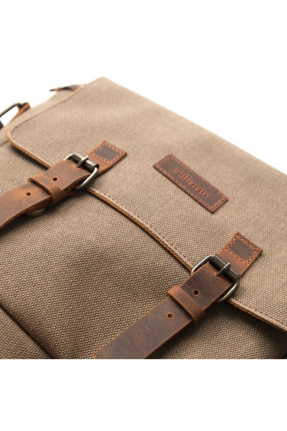 Сочетая стиль и функциональность, сумка-почтальон из канваса и кожи темно-коричневого цвета - отличный выбор для дополнения вашего повседневного стиля.