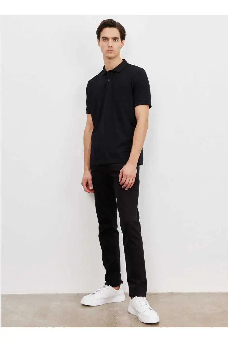 Experience elegance and comfort together with the Polo Collar Black Men's T-shirt 4a9000000004. This special design t-shirt offers comfort all day long thanks to its high-quality cotton fabric, while adding a modern touch to your style with its polo collar detail. This t-shirt, which you can easily prefer in your daily activities or special meetings, is a candidate to be an indispensable part of your wardrobe. The nobility of black and the elegance of the polo collar make this t-shirt wearable in any environment.The 55% cotton and 45% polyester blend ensures that the t-shirt is both soft and durable. In this way, you can use it like the first day for many years. Thanks to the breathability of the fabric, you can stay cool all day long by minimizing the problem of sweating. The woven fabric type protects the structure of the t-shirt, prevents deformation and offers a long-lasting use.The regular fit cut offers comfortable freedom of movement by perfectly adapting to your body lines. This cut, which is neither too tight nor too loose, is designed to suit every body type. Its short-sleeved structure keeps you cool especially in summer, while the standard sleeve type creates a classic and timeless look.The polo collar design adds a sophisticated touch to the t-shirt, while the plain color option allows you to make different combinations. This t-shirt, which you can easily combine with your jeans, shorts or fabric trousers, is an ideal option to reflect your style. The basic silhouette offers a style that is always fashionable and never goes out of style.The ability to be cleaned in accordance with the Type 1 washing instructions makes the maintenance of the t-shirt extremely easy. In this way, you can save time and ensure that your t-shirt always looks clean and well-groomed. With its design that appeals to all age groups, it is a product that will be appreciated by everyone from young people to adults.This product is shipped by [page="merchant_info"]MMY GİYİM[/page] and attracts attention with its discounted price. But remember that it is limited in stock. Since a product can be sold by more than one seller, prices may vary depending on factors such as seller ratings, delivery statuses, promotions, and shipping options.You can order a maximum of 10 of this product. Orders over 10 units may be canceled by Trendyol. Different limits may be set for corporate orders. If you do not like the product, you can return it for free within 15 days. For detailed information, [page="return_conditions"]click[/page].Complete your style and enjoy comfort all day long with the Polo Collar Black Men's T-shirt 4a9000000004.