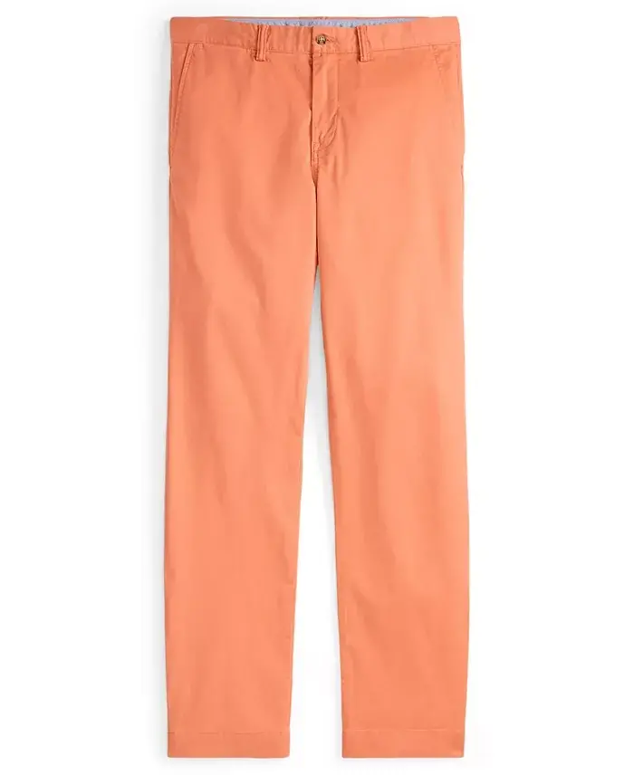 Give your favorite pair of jeans the day off with these stretch cotton chinos--they offer daylong comfort with a dose of modern Polo Ralph Lauren style. Approx. model height is 6'1" and he is wearing a size 32 Approx. inseam 28-34 Stretch straight fit: sits low at the waist Straight through the leg Zip fly with a buttoned closure; belt loops Two front angled pockets; right hip coin pocket Two back buttoned welt pockets Signature embroidered pony above the back right pocket If you favored Polo Ralph Lauren's Custom, sullivan, or varick fit, you will like the slim fit chino Featured on our spring It list A timeless gift for your next occasion. 97% cotton, 3% elastane Machine wash Imported