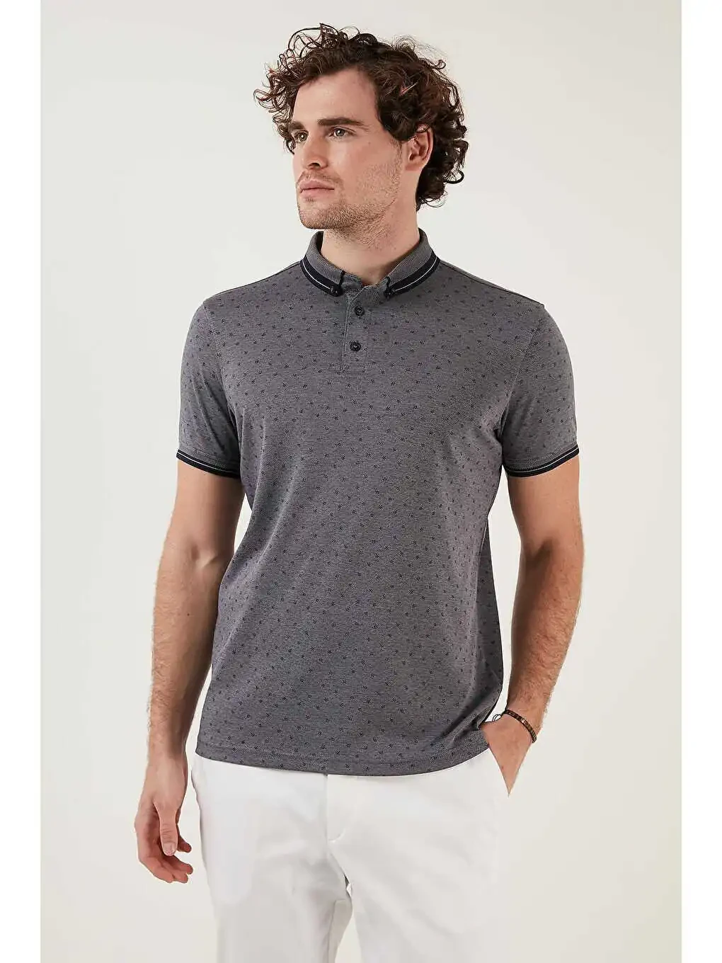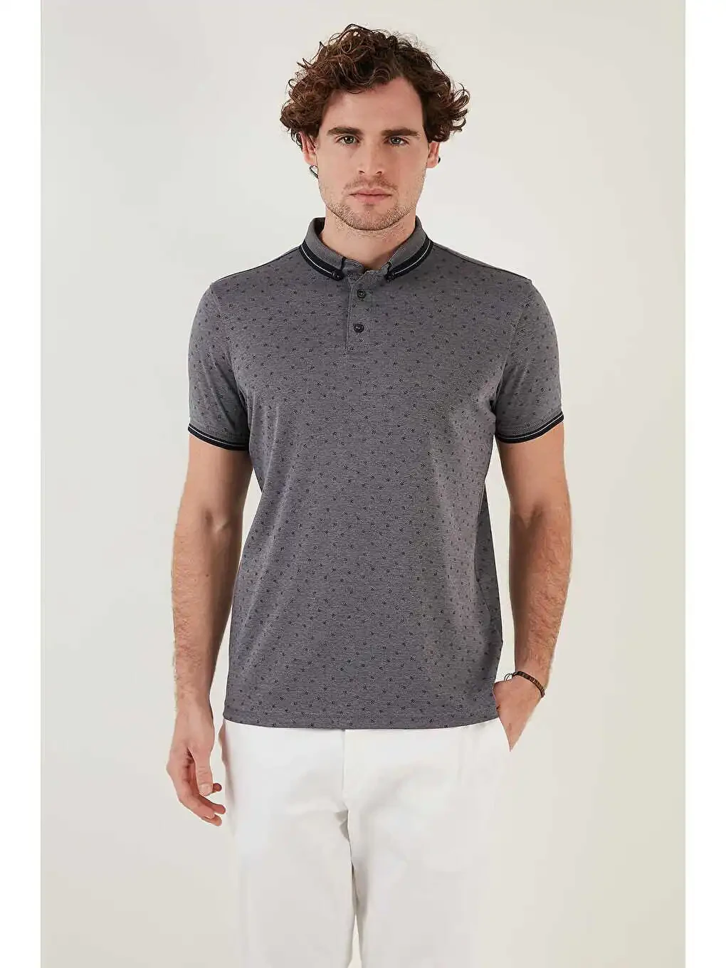 Поло с хлопковой смесью и принтом, slim fit, 646B3250 - отличный выбор для повседневной носки, деловых встреч или особых случаев. Добавьте стиля своему гардеробу с помощью множества цветовых и дизайнерских решений.