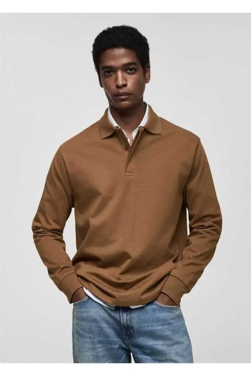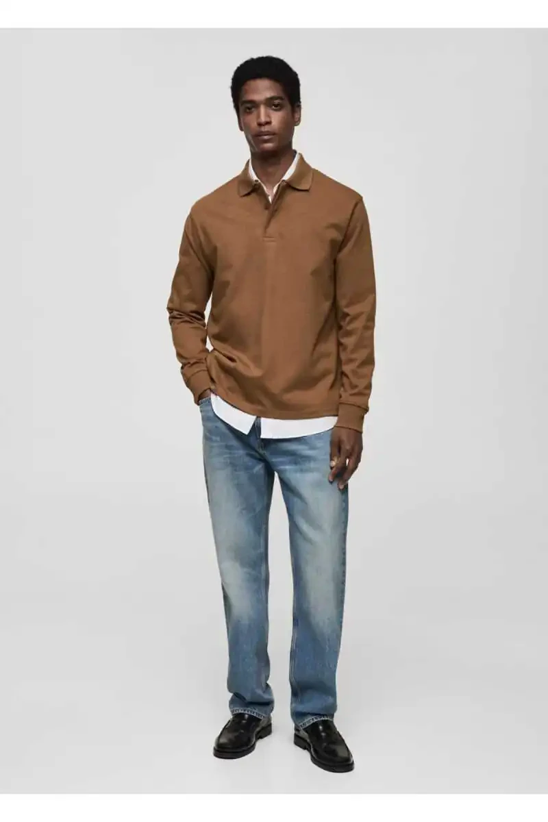 Поло футболка, 100% хлопок, MANGO, Обычная посадка, Поло воротник, Рост модели 185 см, Размер M