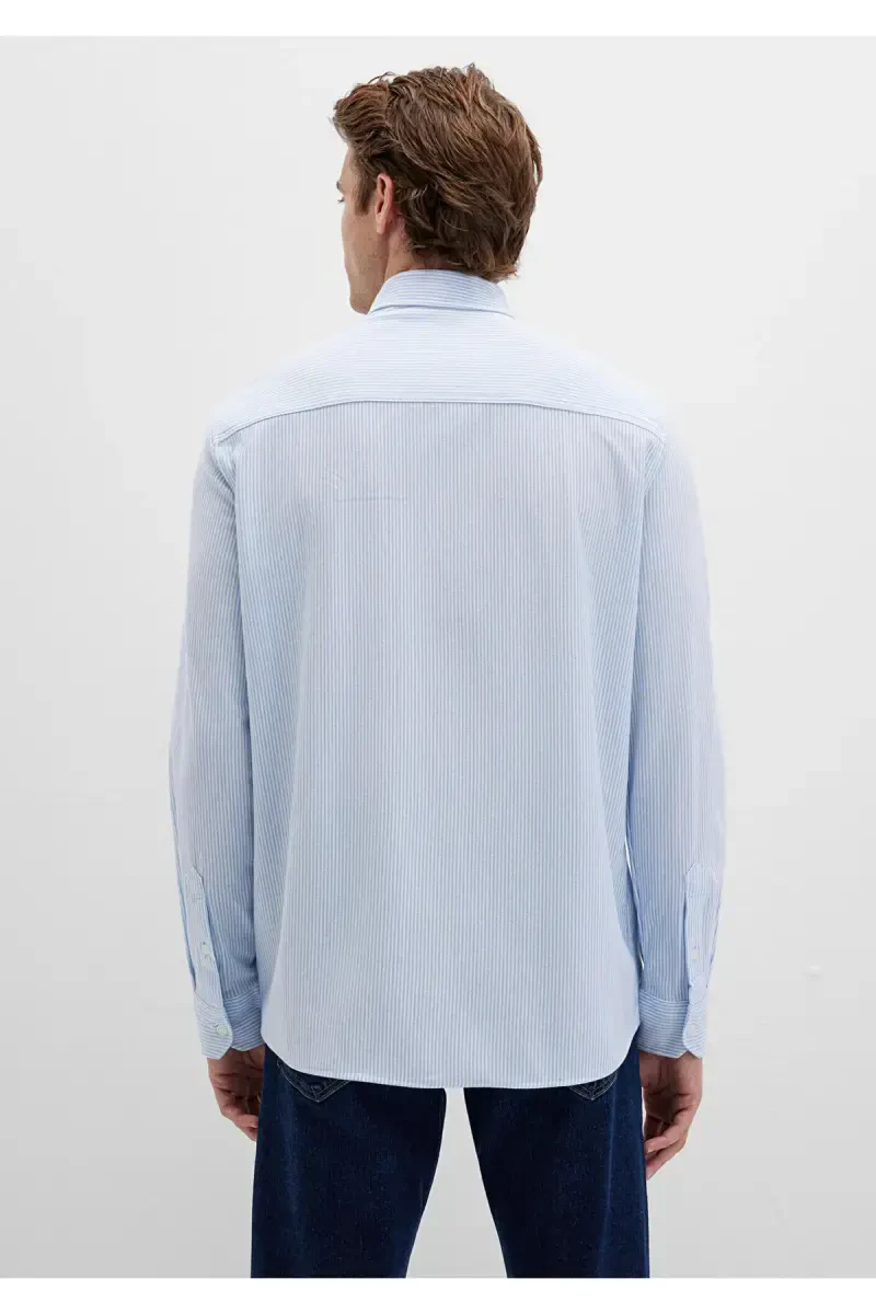 Полосатая Синяя Рубашка Slim Fit / Узкий Крой - это тщательно разработанная вещь, отражающая стиль современного мужчины. Эта рубашка - идеальный выбор как для тех, кто хочет добиться повседневного шика, так и для тех, кто хочет выделиться на особых мероприятиях. Облегающий крой (slim fit) подчеркивает фигуру, создавая более подтянутый вид. Успокаивающий и внушающий доверие эффект синего цвета в сочетании с полосатым узором создает вневременной шик. Независимо от того, сочетаете ли вы ее с джинсами для создания спортивного образа или с классическими брюками для создания более официального стиля, эта рубашка дополнит ваш стиль в любой ситуации. Благодаря высококачественной хлопковой ткани вы будете чувствовать себя комфортно и свежо в течение всего дня. Дышащие свойства ткани предотвращают потоотделение и позволяют коже дышать. Детали швов рубашки, качество изготовления и используемых материалов обеспечивают длительный срок службы. Эта рубашка станет незаменимой вещью в вашем гардеробе. Благодаря своей структуре, которую можно носить в любое время года, она позволит вам создавать различные комбинации. Вы можете дополнить ее стильным пиджаком, чтобы создать более формальный вид, или создать непринужденный стиль, закатав рукава летом. Полосатая Синяя Рубашка Slim Fit / Узкий Крой - идеальный выбор для мужчин, которые хотят одеваться стильно и комфортно. Современный крой и элегантные детали рубашки заставят вас выделяться в любой обстановке. Эта рубашка - не просто предмет одежды, это еще и заявление о стиле. Она повысит вашу уверенность в себе, подчеркнет ваш шик и всегда позволит вам хорошо выглядеть. Полосатая Синяя Рубашка Slim Fit / Узкий Крой станет одной из ваших любимых вещей в гардеробе и будет сопровождать вас долгие годы.