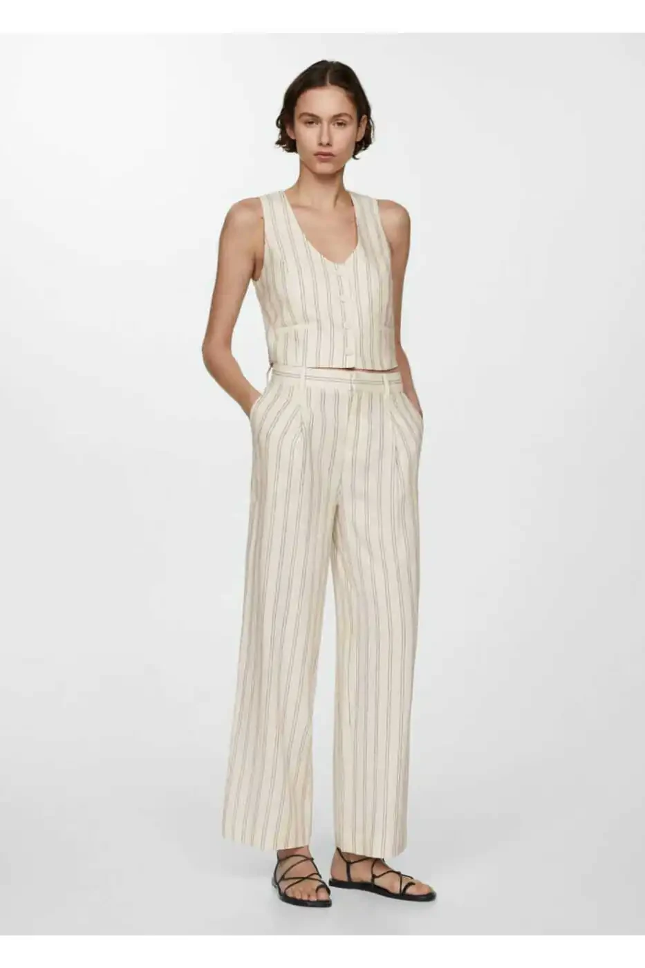 Брюки из смесовой ткани с добавлением льна, Полосатые брюки, Длинные брюки, Удобные брюки, Стильные брюки