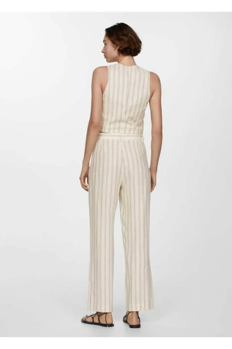 Стильные и удобные полосатые брюки из смесовой ткани с добавлением льна