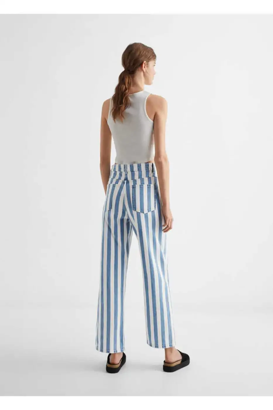 **Джинсы прямого кроя в полоску: стильный и удобный выбор**Представленные на Trendyol джинсы прямого кроя в полоску — это стильное и современное дополнение к вашему гардеробу. Изготовленные из высококачественной тканой ткани, эти джинсы сочетают в себе долговечность и комфорт.**Комфорт прямого кроя**Эти джинсы прямого кроя разработаны таким образом, чтобы они подходили для любого типа телосложения, обеспечивая свободу движений без ущерба для стиля. Свободный крой сочетает в себе комфорт и стиль, а динамичный и модный дизайн понравится молодежи.**Простота в уходе и долговечность**Джинсы легко ухаживать благодаря инструкциям по стирке типа 1, и они сохранят свой первозданный вид после каждой стирки. Материал на 100% состоит из хлопка, что обеспечивает воздухопроницаемость и мягкость, а конструкция из высококачественной тканой ткани гарантирует долговечность.**Практичность и функциональность**Застежка-молния обеспечивает удобство надевания, а высокая талия создает шикарный и элегантный силуэт. Длина брюк стандартная, что позволяет сочетать их с различной обувью. Широкий размерный ряд позволяет подобрать джинсы для любого возраста и типа телосложения.**Гарантия Trendyol**Наслаждайтесь спокойствием благодаря нашей 15-дневной политике бесплатного возврата. Обратите внимание, что заказы, превышающие 10 единиц, могут быть отменены Trendyol.