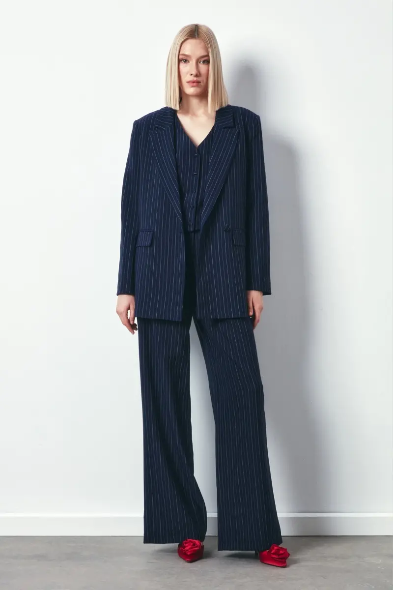 Расслабленный пиджак в полоску - Синий | Стильный и комфортный повседневный стиль