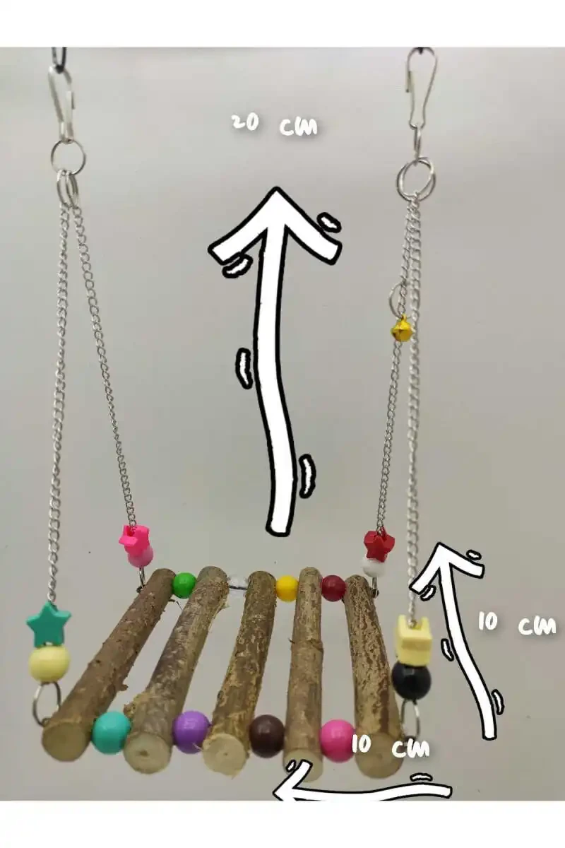 Подарите своему любимому питомцу часы удовольствия с помощью качелей из натурального дерева с бусинами и колокольчиком, которые идеально подойдут для вашего пернатого друга!