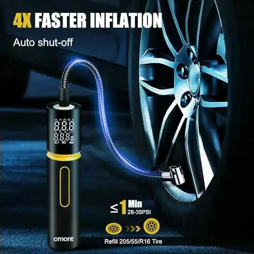 **Portativ Havo Kompressori:** 150 PSI va 20 000 mA/soat batareyali simsiz havo nasosi avtomobil shinalari uchun, avtomabil, velosiped, mototsikl, to'p uchun raqamli bosim o'lchagich bilan tezkor inflyatsiya uchun havo kompressori**Texnik xususiyatlari:*** **Kuchli havo kompressori:** 150 PSI gacha bo'lgan bosimni va daqiqada 36 litr havo oqimini ta'minlaydi.* **Uzoq muddatli batareya:** 20 000 mA/soat quvvatli batareya uzluksiz foydalanish uchun 1-2 soat vaqt beradi.* **4+N aqlli rejimlari:** Velosipedlar, mototsikllar, avtomobillar va to'plar uchun oldindan o'rnatilgan rejimlar, kerakli bosimga erishilganda avtomatik o'chiradi.* **Ko'chma dizayn:** Bir qo'l bilan ishlatish uchun etarlicha ixcham va simsiz dizayn.* **Ko'p qirrali:** Nasos va favqulodda vaziyatlarda quvvat banki sifatida ishlaydi, USB-C kirish va USB-A chiqish portlari mavjud.* **7-in-1 LED yoritgichi:** Kecha foydalanish va favqulodda vaziyatlar uchun LED, SOS va miltillagan yorug'lik rejimlari.**Afzalliklari:*** (195/55/R15) shinalarini atigi 55 soniyada 29 dan 36 PSIgacha shishiradi.* Avtomatik bosimni kuzatish ortiqcha shishirishni oldini oladi.* Avtomobillar, velosipedlar, mototsikllar va to'plar ustida foydalanish uchun mos keladi.* Kompakt va ko'chma, ishlatish va saqlash qulayligi.* Telefonlar va boshqa qurilmalar uchun favqulodda vaziyatlarda quvvat banki sifatida xizmat qiladi.