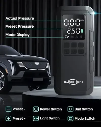 Tire Inflator Portable Air Compressor - 150PSI Air Compressor Portable Tire Inflator for Car Tire Air Pump Portable Air Compressor for Car Tires bilan yo'lda yoki uyda shinalaringizni tez va oson shishirish uchun kerak bo'lgan hamma narsa sizning qo'lingizda! Ushbu kuchli va ko'chma havo kompressori avtomobillar, SUVlar, mototsikllar, velosipedlar va hatto sport to'plari kabi turli xil shinalarni shishirish uchun juda mos keladi. Yuqori samarali chipi va qo'shimcha kuchli dvigateli tufayli, ushbu havo pompasi shinalaringizni bir necha daqiqada shishirishi mumkin, shunda siz yo'lga qaytishingiz yoki o'yiningizni davom ettirishingiz mumkin. Kechasi yoki favqulodda vaziyatlarda foydali bo'lgan yorqin LED chiroqqa ega. Zamonaviy va ixcham dizayni bilan ushbu havo kompressorini mashinangizda, garajingizda yoki uyingizda osongina saqlash mumkin. Foydalanuvchilarga qulay interfeysi va oldindan o'rnatilgan bosim variantlari bilan uni hamma ishlatishi mumkin. Bardoshli tuzilishi va ishonchli ishlashi bilan ushbu kompressor siz yillar davomida ishonishingiz mumkin bo'lgan vositadir.