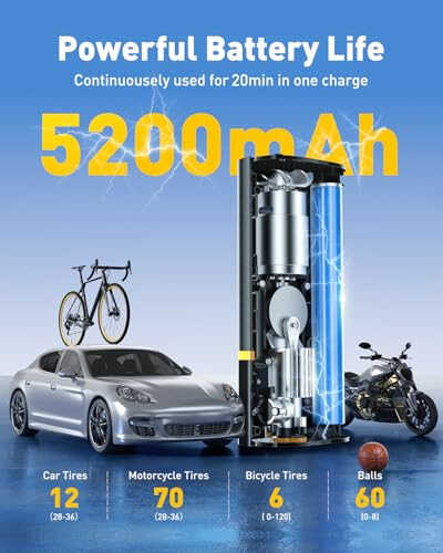 Портативный воздушный компрессор AUXITO - это мощное, универсальное и простое в использовании устройство, которое предлагает все необходимое для накачивания автомобильных шин. Благодаря цифровому манометру, перезаряжаемому аккумулятору, аварийному светодиодному фонарю и функции автоматического отключения этот воздушный насос станет надежным помощником в дороге или дома. Благодаря мощному двигателю и усовершенствованному воздушному цилиндру он может накачать стандартную автомобильную шину (195/60 R15) от 0 до 36 фунтов на квадратный дюйм всего за 7 минут, экономя ваше время. Компактная и портативная конструкция позволяет легко хранить его в автомобиле или гараже. Встроенный аккумулятор емкостью 5200 мАч обеспечивает свободу беспроводного использования и до 20 минут непрерывной работы без подзарядки. Воздушный компрессор AUXITO не только накачивает шины, но также может использоваться в качестве внешнего аккумулятора для зарядки электронных устройств и светодиодного фонаря для экстренных случаев. С помощью зарядного кабеля 5 В/2 А вы можете заряжать свой телефон, планшет и ноутбук. А во время ночных поездок его можно использовать в качестве фонарика или аварийного освещения. Интеллектуальная система контроля температуры предотвращает перегрев устройства после длительного использования и помогает продлить срок его службы. Благодаря технологии шумоподавления компрессор работает плавно и бесшумно. Конструкция быстроразъемного воздушного соединителя позволяет легко подключать и отключать воздушный шланг. Шланг термостойкий и достаточно длинный, чтобы добраться до клапана в положении 12 часов. Портативный воздушный компрессор AUXITO - незаменимый инструмент в дороге, в походе или в экстренных случаях. Он идеально подходит для автомобилей, мотоциклов, велосипедов, мячей и других надувных изделий.