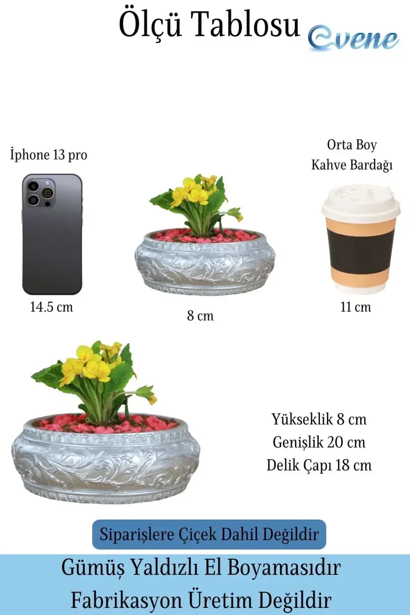 Add Art and Elegance to Your Home: Transform Your Space with Evene Decorative Flower Pots. Evene's collection of decorative flower pots is the most special way to add elegance and prestige to your living spaces. Each pot is designed to showcase the natural beauty of your plants in the most artistic way, offering much more than just an ordinary object. It is an aesthetic lifestyle statement that adds soul to your interior. For those seeking modern home decoration and personal space elegance, Evene offers a design and aesthetic understanding that exceeds expectations. Evene decorative pots add character to your home, enhancing your quality of life. Thanks to its stone powder material, this premium pot offers durable and long-lasting use, maintaining its sparkle for years to come. Its round design provides a modern and stylish look, adding a sophisticated touch to your space. The fine-lined spiral model allows you to showcase the natural beauty of your plants by highlighting them, like a work of art. Especially for those who love gold pots, it offers a striking brightness and elegance with its gold-colored details. With these large or mini pot options, it creates an aesthetic emphasis in every corner, even as a living room pot or balcony pot. Owning an Evene flower pot is not just buying a product, but also becoming part of the Evene family. This artistic pot that adds value to your living space creates an atmosphere that gives you peace and touches your soul. Leave aside the worries of ordinariness in your life and nourish your soul with the unique beauties that Evene offers you. Do yourself a favor with Evene premium home decoration products and make a difference in your living spaces. This special pot, offered with Viselia assurance, will add elegance to every corner of your home. Whether you use it in your living room, on your balcony, or in your garden, it will attract attention in any environment. With the elegance of silver color and modern design, it will perfectly match your plants. Thanks to its large size, it allows your plants to grow comfortably, while its stylish appearance completes your decoration. This pot is not just a flower container, but also a work of art. It will impress your guests and add value to your living spaces. Moreover, it is a product that you can use for many years thanks to its durable material. Don't miss this special opportunity for Trendyol and add style to your home with Evene quality. Remember, you can order a maximum of 10 of this product. You can experience a risk-free shopping experience with a free return option within 15 days. Take your decoration to the next level with Evene!