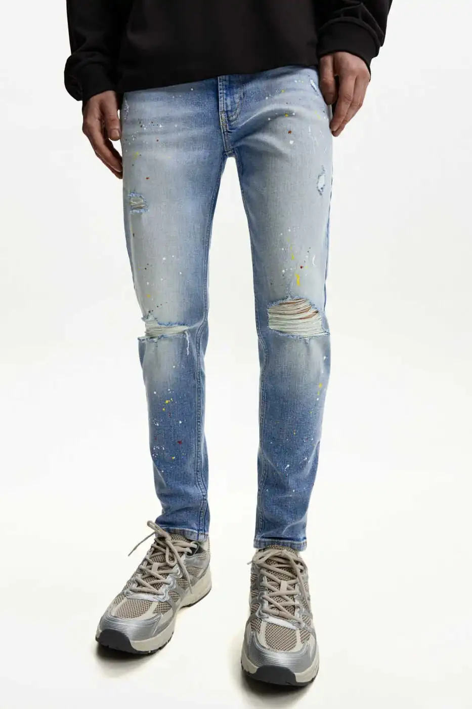 Стильная и эффектная вещь, идеально вписывающаяся в динамичный образ жизни современного мужчины: джинсы Distressed Super Skinny Fit. Эти джинсовые брюки специально разработаны для тех, кто следит за последними модными тенденциями. Благодаря облегающему суперузкому крою (super skinny fit), они создают современный и четкий силуэт, визуально удлиняя ноги. Потертые (distressed) детали, придающие штанам характер и оригинальность, выделяют их из числа обычных джинсов. Процессы потертости и состаривания, применяемые на коленях, карманах или по всей поверхности, добавляют каждой паре брюк уникальную текстуру и историю. Высокое содержание хлопка (98%) обеспечивает воздухопроницаемость и мягкость в течение дня, а добавление 2% эластана — гибкость и свободу движений. Таким образом, несмотря на узкий крой, вы не жертвуете комфортом. Эластан также помогает брюкам сохранять форму, поэтому они выглядят как в первый день даже после стирки. Джинсы Distressed Super Skinny Fit легко сочетаются со многими предметами гардероба. Вы можете создать непринужденный повседневный образ с простой футболкой и кроссовками или более эффектный и городской стиль с элегантной рубашкой и ботинками. Потертая текстура джинсов мгновенно придает вашим образам "крутой" вид, а крой skinny fit демонстрирует современную и элегантную осанку. Эти джинсы являются фаворитом, особенно среди молодой и динамичной аудитории, и могут легко использоваться как в дневных, так и в вечерних образах. Будучи неотъемлемой частью уличного стиля, эти джинсы позволят вам поднять свой стиль на новый уровень. Качественные материалы и мастерство, используемые в производстве, обеспечивают долговечность брюк. Потертые детали со временем могут становиться еще более выразительными в зависимости от вашего личного использования, добавляя вашим джинсам уникальный характер. Выбор джинсов — один из самых важных шагов, отражающих ваш личный стиль. Эти джинсы Distressed Super Skinny Fit — идеальный выбор для уверенных в себе мужчин, которые следуют трендам и не хотят жертвовать комфортом. Они готовы сопровождать вас в любой момент дня благодаря прочной конструкции и эластичной ткани. При соблюдении инструкций по стирке и уходу эти джинсы будут оставаться одной из ваших любимых вещей в гардеробе долгие годы. Многофункциональность джинсов позволяет использовать их в разное время года и для разных мероприятий. Они станут идеальным спутником в прохладные летние вечера, а зимой помогут создать теплый и стильный образ с толстыми свитерами и куртками. Говорите своим стилем, подчеркивайте свою оригинальность и наслаждайтесь современной джинсовой модой с этими джинсами. Эти брюки, в каждом шве которых вы почувствуете качество, а в каждой детали — заботу, являются стильной инвестицией. Обладая кроем и текстурой, которые позволят вам чувствовать себя хорошо, эти джинсы сочетают в себе комфорт и элегантность. Будь то встреча с друзьями, концерт или просто прогулка по городу, эти джинсы будут сопровождать вас и помогут привлечь внимание своим стилем. Эта модель, которую обязательно должны добавить в свою коллекцию любители денима, благодаря distressed эффектам никогда не бывает скучной и всегда остается актуальной вещью. Она легко сочетается даже с другими базовыми вещами в вашем гардеробе, предлагая неограниченные варианты комбинаций. Натуральная тек