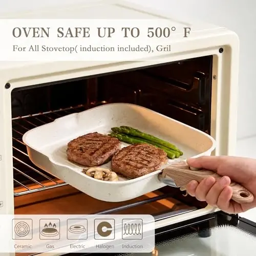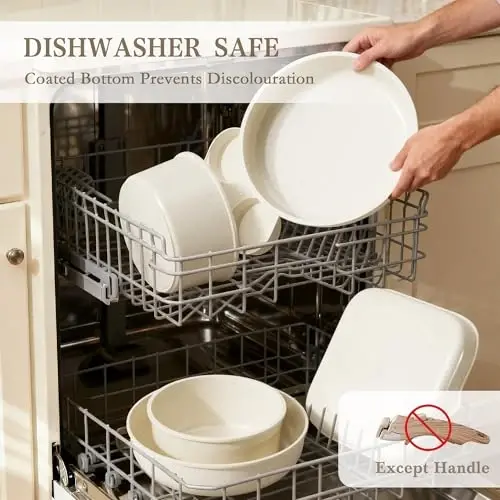 Naturally Nonstick: Free of PTFE, PFOA, PFAS, lead, and cadmium. No sticky residue or tough cleaning - less oil or butter for cooking and minimal scrubbing for a spotlessly clean. Enjoy a healthier, simpler home cooking experience. Secure Removable Handle: Cookware set includes a cutting-edge removable handle with a sturdy lock. Stable grip while cooking, so you cook with total confidence every time. Space-Saving Design: Detachable handle pots and pans let you organize by stacking (great for camping), saving up to 70% space. Keep your kitchen tidy while having all the cookware you need. Ultimate Versatility: Detachable handle lets you move from stove to oven to fridge. Easy to pack in car trunks - ideal for kitchens, camping, RVs, and travel. Versatile Compatibility: The magnetic base ensures even heat distribution and fits all stovetops (including induction). Dishwasher safe.