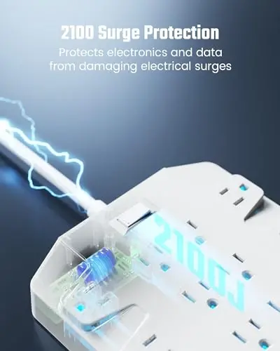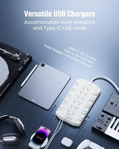 Safely and efficiently meet your energy needs in your home, office, or gaming room with the SUPERDANNY Surge Protector Power Strip. This versatile power strip offers the ability to charge and operate multiple devices simultaneously with 22 standard AC outlets, 2 USB-C ports, and 4 USB-A ports. Thanks to its 2100 Joule surge protection, it protects your electronic devices from sudden voltage surges, preventing data loss and hardware damage. The 6.5-foot heavy-duty extension cord allows you to easily reach your power strip where you need it. The flat plug design helps you save space by fitting comfortably behind furniture. With a capacity of 1875W/15A, you can safely use high-power devices. Its wall-mountable feature provides a neat and organized usage without taking up space on the countertop or floor. The stylish white design complements any decor. SUPERDANNY Surge Protector Power Strip is an ideal solution to meet the energy needs of modern life by offering safety, versatility, and performance in one. Whether you use it at home, in the office, in the dorm, or in the gaming room, this power strip will always provide you with reliable and uninterrupted power. Trust SUPERDANNY for the safety and longevity of your devices. This power strip is not just a power source, but also an investment that ensures the safety of your devices. You no longer have to suffer from a lack of outlets and expose your devices to overcurrent. Manage your energy needs intelligently with SUPERDANNY and keep your devices safe.