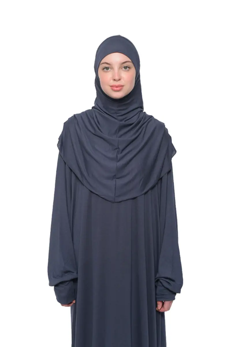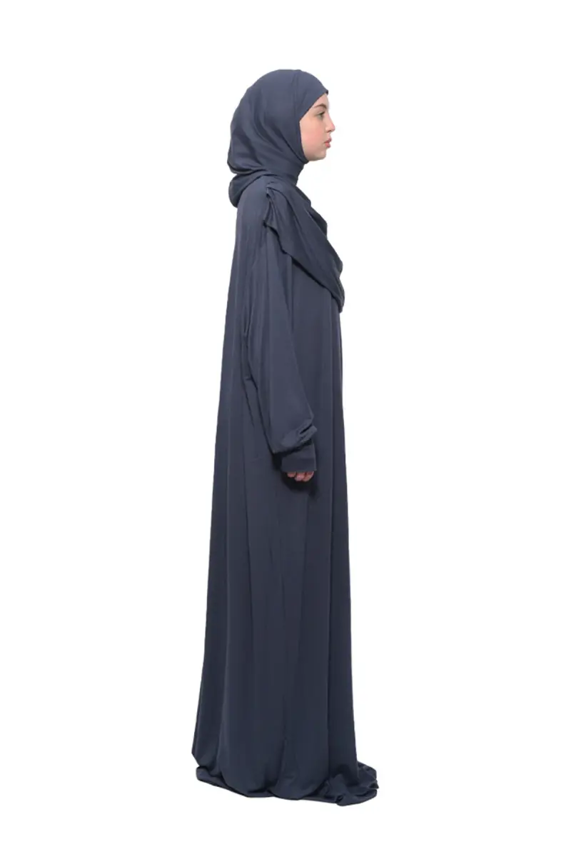 Практичное цельное платье для намаза из органического хлопка с рукавами-летучая мышь и съемным хиджабом серого цвета