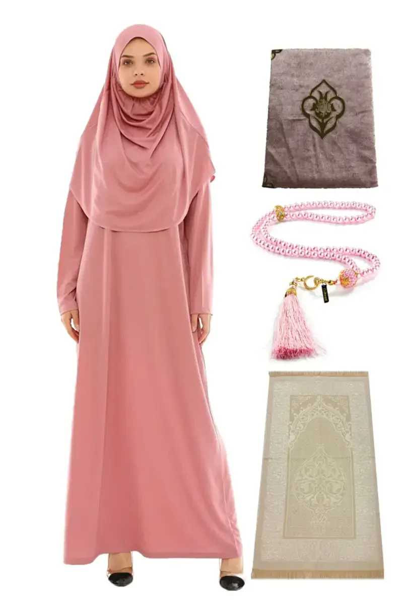 Prayer Dress Sejadah Pearl Rosary Set - Rose Powder, is specially designed by Medipek to make your worship more peaceful and stylish. This unique set consists of a prayer dress, prayer rug, pearl rosary and Yasin-i Sharif book. Our product is offered with Medipek assurance and stands out with its quality and elegance. The prayer dress is made of lycra and flexible jersey fabric, compatible with sizes 38-44. You can make a special notification via message for large sizes. Thanks to its one-piece design, it is easy to wear and its draped fabric that does not require ironing allows you to always look well-groomed. Its fabric and color tone are special to our company and there is no equivalent. It is carefully sewn and its durability is increased by sewing its sleeves and hem with a hemming machine. You can easily perform your prayers thanks to its non-sweating fabric. Its length from shoulder to hem is 145 cm and it is one piece with the headscarf. The luxurious Ottoman taffeta prayer rug included in the set measures 117 x 67 cm. Thanks to its lightweight and thin structure, it is easy to carry and use. This prayer rug, which is in the economic class, is made of bright yarn and is a special fabric type with different colors in its weft and weave. The quality and price of the prayer rug vary depending on the quality and grammage of the yarn used in its content. This set, which is offered with a 99-piece pearl rosary and Yasin-i Sharif book, will be a meaningful gift option for yourself and your loved ones. As Medipek, we focus on 100% customer satisfaction in all our products. The photo shoots belong to our company and reflect the quality of our product in the best way. Medipek products are only sold in the Medipek store, so we kindly ask you to avoid imitation products.