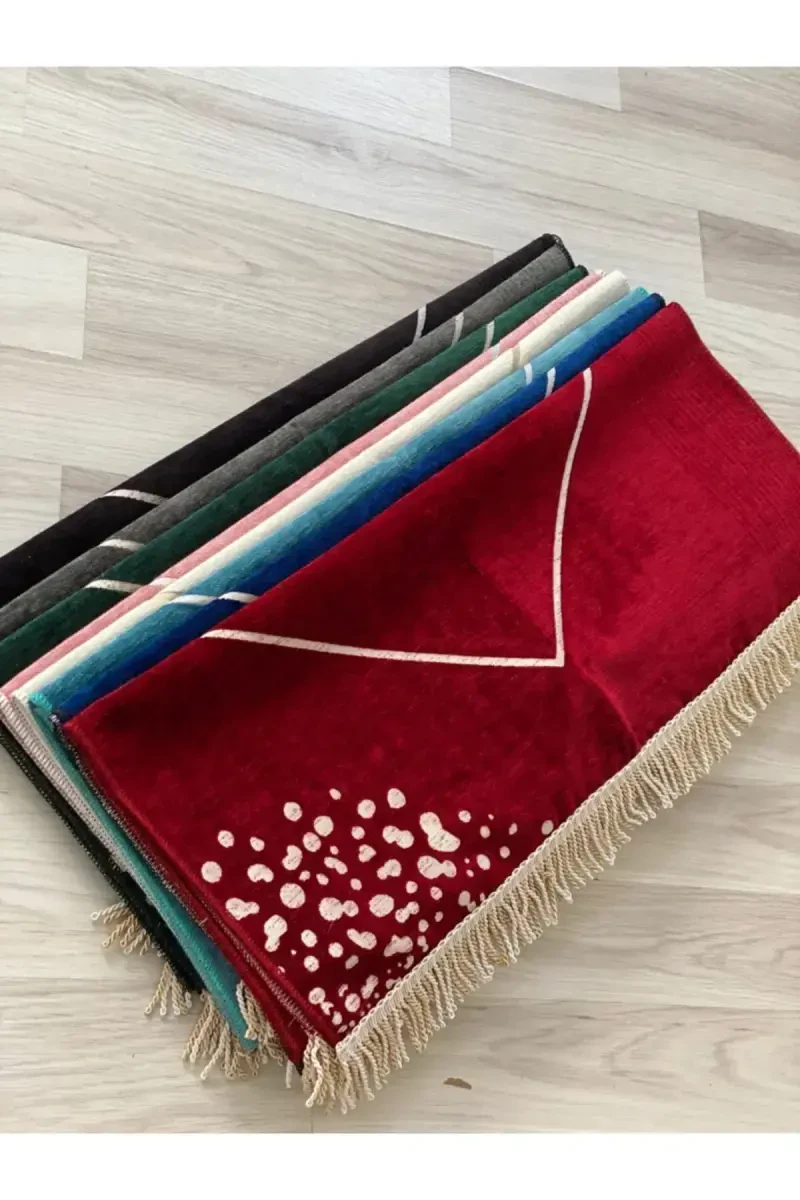 Make your prayers more peaceful and meaningful with the special design Prayer Rug Burgundy Color, which combines the nobility and warmth of burgundy. This elegant prayer rug, with its high-quality velvet fabric and carefully crafted details, will both appeal to your taste and offer comfortable use. Thanks to its ideal size of 70x120 cm, you can move comfortably while praying and fully experience the peace of prostration. The elegant tassels on the edges of the prayer rug add an authentic touch to the design, while perfectly harmonizing with the depth and elegance of the burgundy color. Whether at home or while traveling, you can carry this prayer rug with you, allowing you to perform your prayers anytime and anywhere. The soft texture of the velvet fabric provides comfort to your knees and forehead, maintaining your comfort even during long prayers. The warmth and soothing effect of the burgundy color relaxes your soul, allowing you to focus better on your prayers. Prayer Rug Burgundy Color is not just a prayer tool, but also an accessory that will add elegance to your home decor. The nobility of the burgundy color and the luxurious appearance of the velvet fabric add a sophisticated atmosphere to the environment. This special prayer rug is a meaningful and valuable option to gift to your loved ones. You will both offer them spiritual support and give them an elegant gift. Make your prayers more enjoyable and meaningful with Prayer Rug Burgundy Color, and fill your soul with peace. This special prayer rug will accompany you for many years and guide you on your spiritual journey. Prayer Rug Burgundy Color, which contains care and quality in every detail, offers you a unique experience while performing your prayers. The depth of the burgundy color, the softness of the velvet fabric, and the elegance of the tassels distinguish this prayer rug from others. Choose Prayer Rug Burgundy Color to make your prayers more special and to relax your soul.