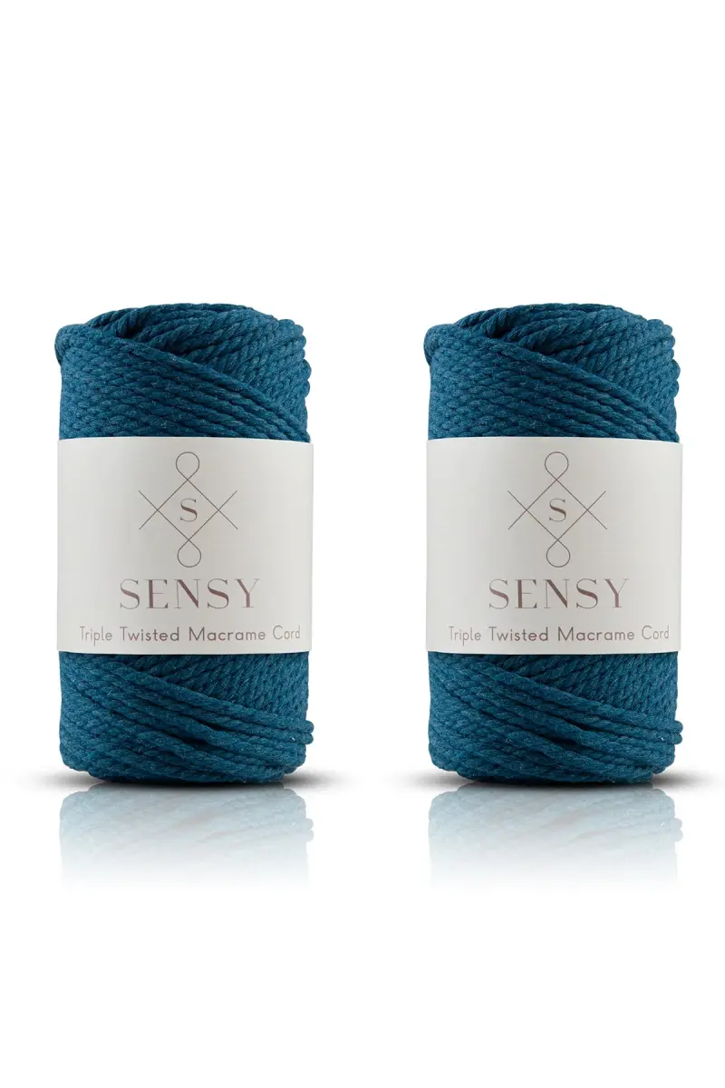 Let your creativity shine with SENSY Premium 3-Ply Macrame Rope! This set of 2 is designed to add a natural touch and unique aesthetic to your macrame projects. Each rope is made from 100% recycled cotton, allowing you to make an environmentally conscious choice. With a thickness of 3 mm and a three-ply structure, it stands out with its taranability, adding volume and dimension to your projects. The depth and elegance of the petrol blue color allow you to make a difference in all kinds of macrame work, from home decoration to personal accessories. Whether you use it for large projects such as bags, curtains, rugs, runners, door ornaments, wall ornaments or hammocks, it is very easy to turn your dreams into reality with these ropes. Each piece in the set weighs approximately 250 grams and is 75 meters long. In this way, you can easily complete multiple projects and create original designs by trying different techniques. Remember that since recycled cotton is used, there may be slight differences in color tones between production batches. Therefore, ordering the amount you need for your project at once will help you maintain color integrity. With SENSY Premium Macrame Rope, you contribute not only to a hobby but also to a sustainable lifestyle. Enjoy the art of macrame while experiencing the peace of mind of making an environmentally friendly choice. Unleash your creativity with our products and enrich your home, office or wardrobe with your personal touches. Feel the quality of SENSY in every knot, in every design. Take your macrame projects to the next level and enjoy creating unique works. This set is a perfect option for both beginners and experienced macrame artists. Thanks to its easy use and high-quality material, it appeals to users of all levels. Step into the world of macrame with SENSY and discover your creativity!