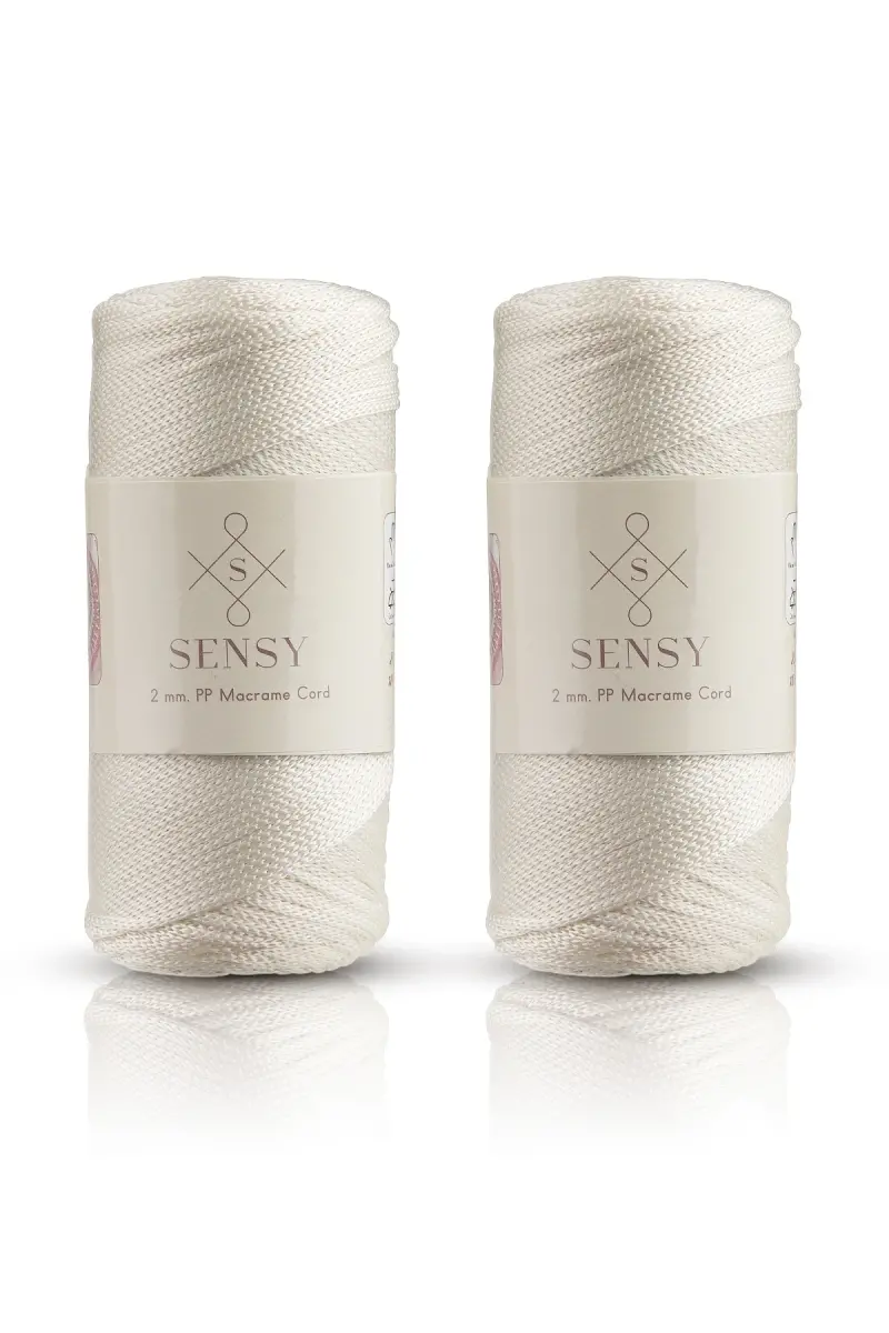 Let your creativity shine with SENSY Premium Polyester Macrame Cord! This set of 2, with its ecru color and 2 mm thickness, will add a natural and elegant touch to your macrame projects. Made of 100% polypropylene, this domestically produced cord stands out with its durability and ease of use. Each piece weighs 200 grams and is approximately 230 meters long, providing you with enough cord for various projects. Whether you're designing keychains, bags, placemats, runners, rugs, wall hangings, pouches, or coasters, you can turn your dreams into reality with this cord. Its structure, which can be easily knitted with 4 mm or 5 mm crochet hooks, makes it ideal for both beginners and experienced macrame lovers. SENSY Premium Polyester Macrame Cord not only gives your projects an aesthetic appearance but also offers long-lasting use. To keep your products like new for a long time, you can hand wash them in 30 degrees lukewarm water. By avoiding machine washing, you can preserve the structure and color of the cord. This set is an excellent choice for anyone who loves macrame art. This macrame cord, produced with SENSY quality, will add value to your projects and allow you to freely express your creativity without limits. The warmth and natural texture of the ecru color will suit all kinds of decorations and help you create a stylish atmosphere in your home or office. You can create unique and personal designs with this cord that you will use in your macrame projects and prepare special gifts for your loved ones. Enjoy the art of macrame with SENSY Premium Polyester Macrame Cord and unleash your creativity!