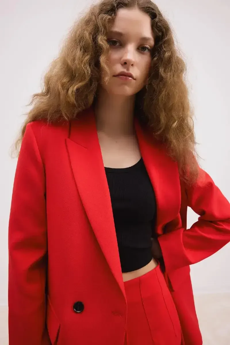 Premium Oversize Fit Blazer palto C2457AX-Qizil, zamonaviy va qulay uslub qidirayotgan ayollar uchun mo'ljallangan. Qizil rangning energiyasi va oversize bichimining trend ko'rinishi birlashib, o'ziga xos nafislikni taqdim etadi. Ushbu blazer palto, yuqori sifatli matosi tufayli uzoq muddatli foydalanishni va'da qiladi, ayni paytda teringizga nafas olish imkonini beradi. Tugma detallari va ehtiyotkorlik bilan ishlangan yoqasi, paltoning nafisligini oldinga suradi. Xohlasangiz, jinsi shimlar va sport poyafzallari bilan kombinatsiyalab tasodifiy ko'rinishga ega bo'ling, xohlasangiz, nafis yubka va poshnali poyafzallar bilan maxsus tadbirga qatnashing; bu palto har doim sizga hamroh bo'ladi. Oversize fit bichimi, harakat erkinligingizni cheklamagan holda, qulay foydalanish tajribasini taqdim etadi. Ichki astarli bo'lgani uchun qulay kiyimni ta'minlaydi. Qizil rangi bilan ajralib turadigan ushbu blazer palto, uslubingizga jonlilik bag'ishlaydi, ayni paytda o'ziga xosligingizni ham aks ettirishga yordam beradi. Garderobingizning eng sevimli qismiga aylanishga da'vogar bu palto, har qanday mavsumda bemalol ishlatilishi mumkin. Bahor va yoz oylarida yengil bluzka yoki futbolka ustidan kiyib salqin oqshomlardan zavqlanishingiz mumkin, kuz va qish oylarida esa qalin sviter bilan kombinatsiyalab ham issiq qolishingiz, ham nafisligingizni saqlashingiz mumkin. Premium Oversize Fit Blazer palto, shunchaki kiyim emas, balki ifoda usulidir. Tarzingizni aks ettirish va o'ziga xosligingizni ta'kidlash uchun ajoyib tanlovdir. C2457AX model kodi bilan taqdim etilgan bu qizil blazer palto, nafislik va qulaylikni birgalikda qidirayotgan ayollarning ajralmasiga aylanadi.