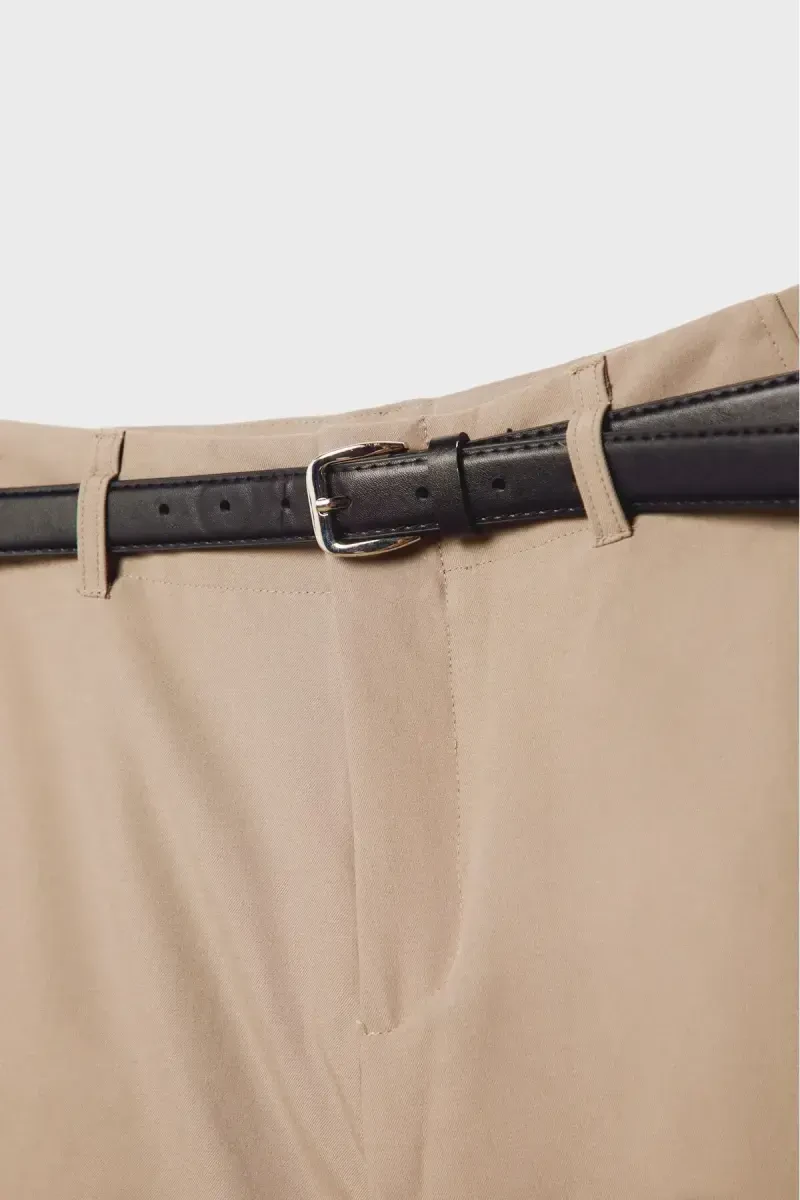 Брюки из ткани прямого кроя с поясом и свободным силуэтом - Сочетание стиля и комфорта