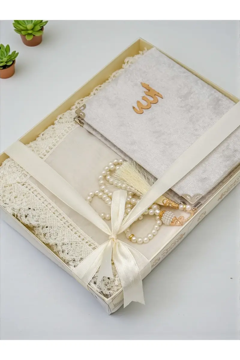 Идеальный выбор для тех, кто хочет подарить самые ценные подарки на особые случаи! Этот элегантный набор включает в себя молитвенный коврик, украшенный вышивкой иглой, Ясин-и Шериф и четки. Каждый предмет был тщательно отобран и изготовлен из самых качественных материалов. Он предлагает потрясающий вариант подарка, сочетая в себе элегантность и духовную ценность.