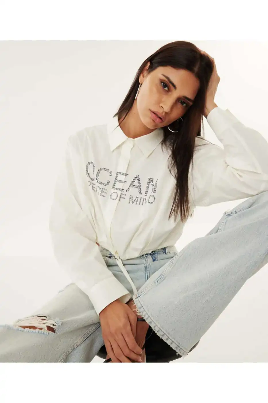 Printed poplin shirts can be easily combined with different bottom wear options like jeans, shorts, and skirts. You can combine them with plain trousers for a classic look or with patterned skirts for a more stylish look. You can complete your look by adding an accessory that complements your shirt.