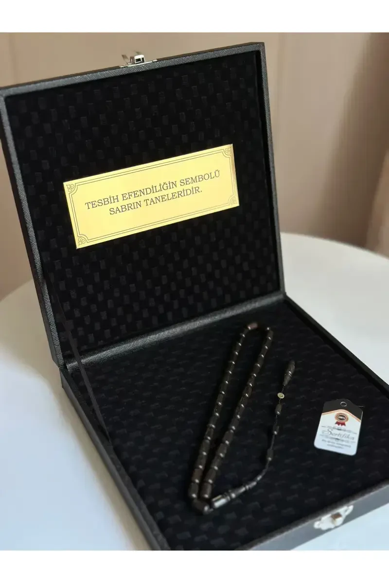 Special Written, Special Boxed Ebony Wood Rosary Master Signed Men's Gift Certified Personalized Name-ebony is a candidate to be one of the most meaningful and personal gifts you can give to your loved ones! This rosary is not just an accessory, but has a special value with its meaning and aesthetic details. Offered with the assurance of Kehribar Store, this unique product combines the natural beauty of ebony wood, master craftsmanship and the unique personalization of a person. Produced from carefully selected ebony wood, this rosary has the durability to maintain its elegance for many years. The unique texture and color of ebony wood adds a natural elegance to the rosary, while the harmony and fluency between each bead offers a pleasant experience while chanting or just holding it in your hand. One of the most striking features of the rosary is the possibility of personal name printing. By having the name of your loved ones or a word that has a special meaning for you printed on the rosary, you can give them an unforgettable gift. This personalization turns the rosary from an ordinary accessory into a special item with which an emotional bond is established. Gold-plated details add a rich and flashy look to the rosary. Gold plating creates a perfect contrast with the dark color of ebony wood, making the rosary look eye-catching. At the same time, gold-plated details increase the durability of the rosary and help it maintain its original shine for many years. The use of amber stone adds both aesthetic value and durability to the rosary. The natural warmth and energy of amber stone gives peace and tranquility to the person using the rosary. In addition, amber stone makes the rosary more resistant to scratches and impacts. Kuka material adds a natural and authentic touch to the rosary. Since kuka is a light and easy-to-process material, it allows the rosary to be carried and used comfortably in the hand. The unique smell of kuka adds a special feature to the rosary, while at the same time giving a natural feeling of relaxation. This rosary, which can carry your personal message with its slogan pattern, offers an unforgettable gift alternative to your loved ones on special occasions. This rosary will be a perfect choice for birthdays, anniversaries, father's day or just any day you want to make your loved ones happy. This rosary, presented with its special box and certificate, shows the value and care you give to the person you give it to. Being master-signed proves that the rosary is produced by hand and that attention is paid to every detail. This special design rosary is not just a gift, but also a work of art.