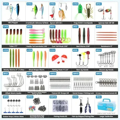 **[All-in-One Fishing Tackle Box Set]:**This fishing gear set includes almost everything needed for fishing, including various fishing lures, hooks, weights, swivels, and other fishing accessories.**[Multi-layer Tackle Box]:** The fishing tackle box has a multi-layer design that can store different types of fishing gear separately, making it easy to find and use.**[Suitable for Various Fishing Methods]:**This fishing gear set is suitable for various fishing methods, including freshwater fishing, saltwater fishing, ice fishing, etc. It is an ideal choice for fishing enthusiasts.**[Portable Design]:**The fishing tackle box is lightweight and portable, making it easy to carry around. Whether you are going fishing outdoors or storing fishing gear at home, it is very convenient.**[High-Quality Materials]:**All fishing gear accessories are made of high-quality materials to ensure their durability and reliability. The fishing tackle box is made of sturdy plastic material, which is wear-resistant and durable and can effectively protect the fishing gear.
