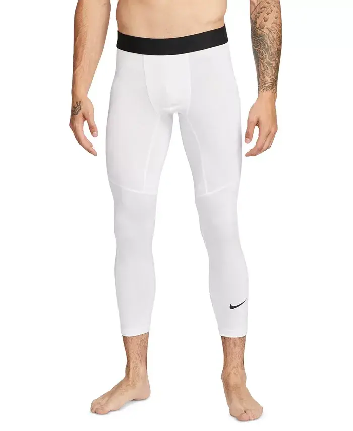 Push your limits during your workouts and activities with Pro Men's Dri-FIT 3/4 Length Fitness Tights. Thanks to their flexible and knitted fabric, these tights provide a body-hugging feel while not restricting your natural freedom of movement. Personalize your workout style by wearing them alone or under your shorts. Produced with Nike's Dri-FIT technology, these tights quickly wick away sweat, keeping you dry and comfortable. This way, you can focus on your workout and deliver your best performance.The slim fit gently hugs your body, providing support and not restricting your movements. The elastic waistband ensures the tights stay securely and comfortably in place. Additionally, two side pockets allow you to carry your phone, keys, or other small items with you. These pockets keep your belongings safe during training while providing easy access.Pro Men's Dri-FIT 3/4 Length Fitness Tights are not only an ideal option for your workouts but also for your daily activities. Thanks to their flexible and comfortable structure, you can move comfortably throughout the day. Whether you are at the gym, outdoors, or relaxing at home, these tights will accompany you.Produced with Nike's quality and durability, these tights are designed for long-lasting use. Thanks to the machine-washable feature, they can be easily cleaned and maintained. The polyester and spandex blend fabric ensures the tights retain their shape and elasticity for a long time. Experience comfort and performance together in your workouts and daily life with Pro Men's Dri-FIT 3/4 Length Fitness Tights.