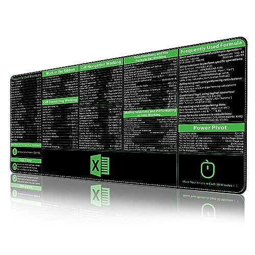 【Version Upgrade】From 31.5"×11.8" to 35.4"×15.7", this upgrade excel cheat sheet desk pad offers a larger workspace and an increased protective area. It provides more advanced shortcuts and formulas for an enhanced experience. Upgraded printing technology ensures high-definition and fade-resistant visuals. The finer partitioning is tailored to professionals' preferences. 【Durable Quality】With its generous size of 35.4 x 15.7 inches, the Giant Size mouse pad is highly suitable for professionals. Thanks to its strong anti-slip bottom, smooth water-resistant leather surface, and high-quality natural rubber material, this mouse pad can also serve as a writing pad, desk blotter, or table mat. 【Know Excel and Gain More】The Excel Cheat Sheet Desk Pad can significantly enhance users' productivity and efficiency. It's a special gift that assists your friends, family, and partners in succeeding both in school and their careers. Scientific research indicates that employees who have mastered Excel skills tend to earn more, experiencing an average salary increase of over 22%. 【Designed to Be More Professional】A excel shortcuts mousepad made of natural rubber serves as a desk protector to prevent scratches, stains, wear, and damage. Meanwhile, a desk mat that can accommodate a laptop, mouse, and mechanical keyboard effectively showcases professionalism and office efficiency. This enables quick learning of new Excel shortcuts and easy access to commands without the need to "Google" them. 【Employee Appreciation Gifts for Coworkers】With a bunch of excel shortcuts showed on the large mouse pad, the excellent excel desk mat will increase your work effeciency and draws all other eyes in your office! 【Easy to Clean】Daily spills on the pad's spill-repellent surface won't penetrate or damage it. Simply use a rag to absorb and wipe away spilled liquids. Easy cleaning also ensures the mouse pad's extended service life.
