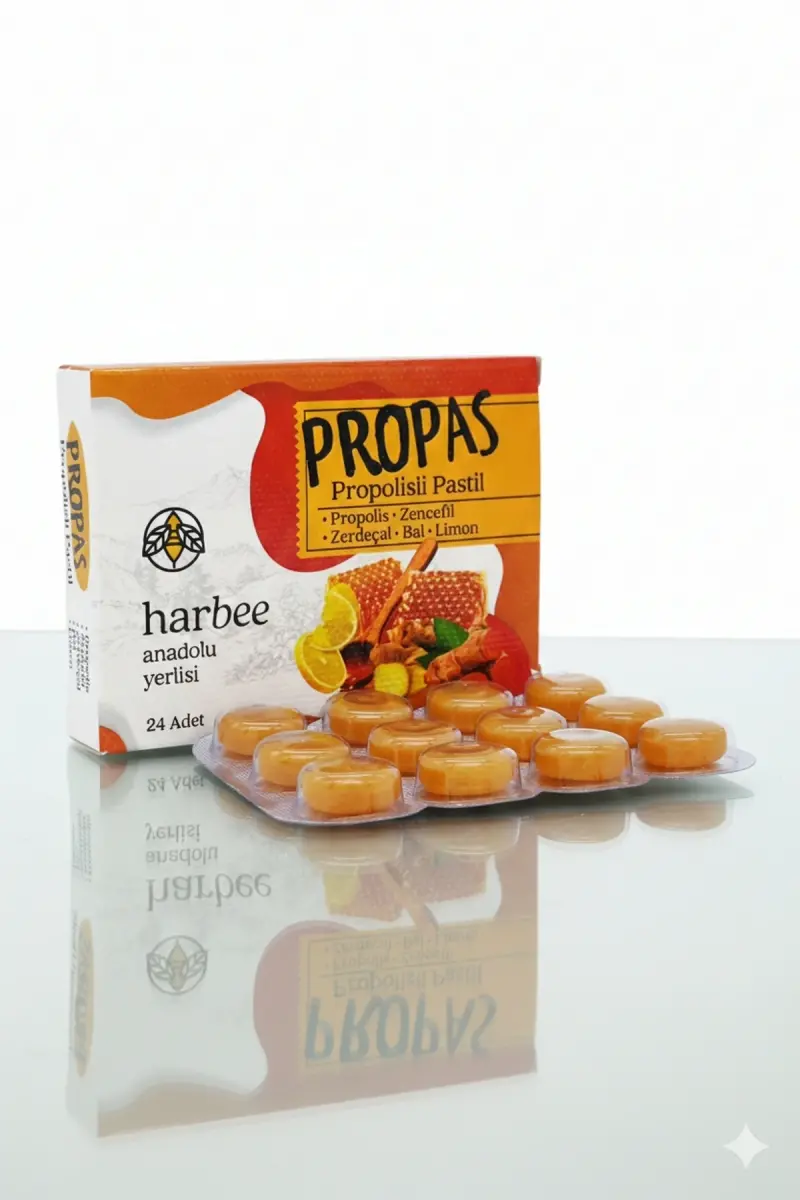 Propas is a propolis lozenge specially formulated for those seeking a natural solution for ailments such as sore throat, cough and cold. The high-quality propolis in its content soothes your throat with its natural antibacterial and anti-inflammatory properties, supports your immune system and accelerates your recovery.