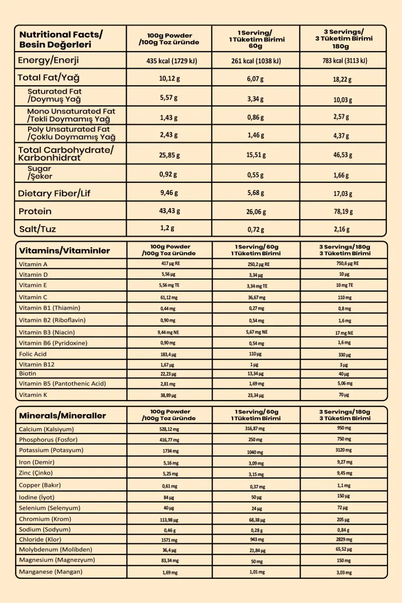 With the delicious cookie flavor of Cookies Dream, you can get energy and nutritional support after your workout or at any meal. The high protein content helps repair and grow your muscles, while the fiber content regulates your digestive system and provides a feeling of fullness.