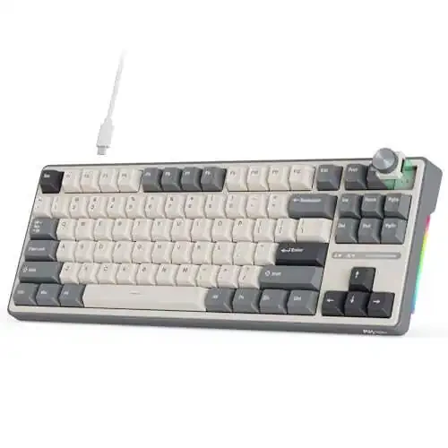 RK ROYAL KLUDGE R87 Pro - это высокопроизводительная механическая клавиатура с возможностью горячей замены, разработанная для геймеров и любителей печати. Ее размер 75% отличается компактным дизайном, который экономит место на вашем столе, а раскладка на 88 клавиш обеспечивает доступ ко всем основным клавишам для игр и повседневных задач. RGB-подсветка предлагает 16,8 миллионов цветовых вариантов для персонализированного внешнего вида. Кремовые переключатели обеспечивают плавное и отзывчивое ощущение для быстрого и точного ввода.