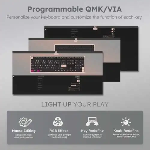 Функция горячей замены кнопки R87 Pro расширяет возможности персонализации. Вы можете легко попробовать разные типы переключателей и создать клавиатуру, которая соответствует вашим предпочтениям. Поддержка QMK/VIA еще больше расширяет возможности настройки, позволяя создавать макросы, переназначать клавиши и еще больше оптимизировать работу с клавиатурой.