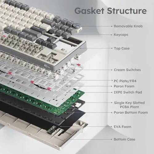 Конструкция с прокладками - это функция, которая обеспечивает более тихий опыт печати и обеспечивает лучшее ощущение при создании тихих щелчков. R87 Pro отличается прочной конструкцией и рассчитана на ежедневное использование. Это идеальный выбор для геймеров, любителей печати и энтузиастов настройки клавиатуры.