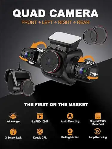 PRUVEEO 360 Graduslik Ko'rinish 4 Kanal Dash Cam bilan mashinangiz atrofida sodir bo'layotgan hamma narsani yozib oling va xotirjamlik bilan haydang!