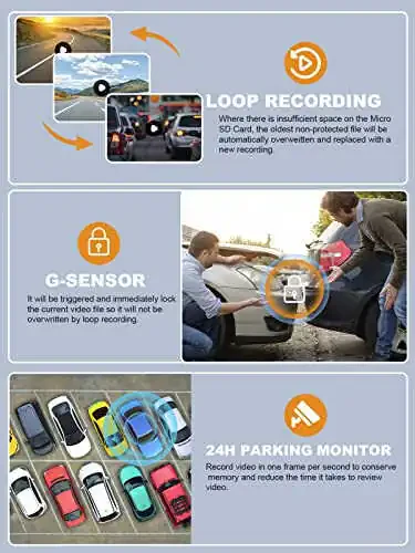 PRUVEEO обеспечивает круглосуточную безопасность вашего автомобиля благодаря круглосуточной записи и режиму мониторинга парковки. Функция круглосуточной записи непрерывно записывает, пока ваш автомобиль находится в движении, а режим мониторинга парковки автоматически начинает запись, если обнаруживает какой-либо удар или столкновение, пока ваш автомобиль припаркован.