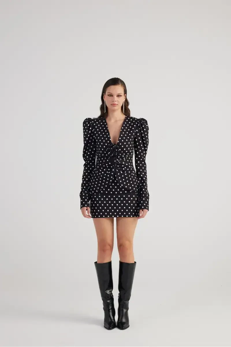Puantiyeli Gül Aksesuarlı Karpuz Kol Blazer Wilma Ceket Siyah ile şıklığı ve özgünlüğü bir arada yaşayın. Bu özel tasarım blazer ceket, gardırobunuzun vazgeçilmez parçası olmaya aday. Puantiye deseni ve çıkarılabilir gül aksesuarı ile dikkat çeken bu ceket, karpuz kol kesimi ve bele oturan yapısıyla feminen bir siluet oluşturur. Astarlı yapısı sayesinde gün boyu konforlu bir kullanım sunar. Özel davetlerden günlük kombinlerinize kadar her ortamda tarzınızı yansıtmanızı sağlar. Holly Lolly tarafından özenle tasarlanmış bu blazer ceket, yüksek kaliteli malzemesi ve detaylı işçiliği ile uzun ömürlüdür. Modelin üzerindeki beden XS olup, mankenin ölçüleri Boy: 1.77, Göğüs: 89, Bel: 61, Kalça: 94'tür. Siparişinizi vermeden önce görsellerdeki beden tablosunu inceleyerek size en uygun bedeni seçebilirsiniz. Trendyol güvencesiyle sunulan bu ürünü 15 gün içinde ücretsiz iade edebilirsiniz. Şıklığınızı ve tarzınızı ön plana çıkaracak Puantiyeli Gül Aksesuarlı Karpuz Kol Blazer Wilma Ceket Siyah ile her ortamda fark yaratın.
